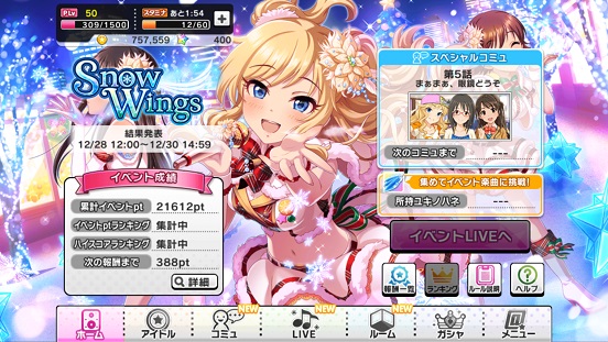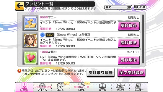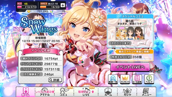 Snow Wingsも後半戦になってきましたが、個人的な目標は23000くらいでしょうか。これでダメでしたら仕方がないですね。個人的にユキノハネの抱え落ちしないように貯まったらすぐ使っていこうと思います。というのも突然呼び出し食らったり等予想外のことがあり得るので(実際に起こったことがあるのでこわい…)貯まったらさっさと使ってしまいたいですね。現在12389ptなのでとっくにSR春菜は1枚目を取りました。