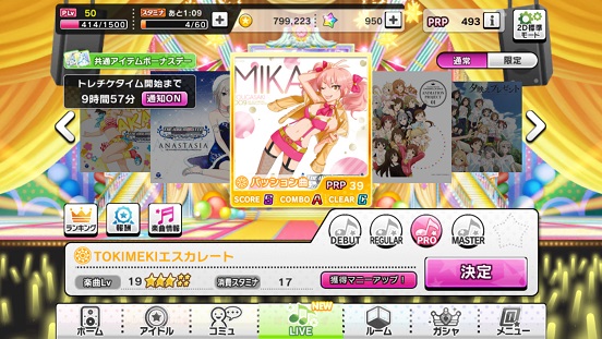 順位は40000位くらいでしょうか。前回と違うのはほぼ全曲MASTERをぶん回しているので、前回より大きくスコアが上がったところでしょうか。ハイスコアはさすがに無課金では不可能レベルなので諦めてますが。SSRが何枚もないと厳しそう。