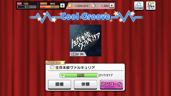 それとイベント曲「生存本能ヴァルキュリア」なんかもうタイトルだけでロボットアニメとかバトルものアニメとかそういうの想像する人多かったんだろうけど、聞いたときまさにそうだろうと思います。イメージはガンダムとかマクロス?(にわかの感想)MASTERはさっききのこさんユニットでしたので今度はMASTER+。