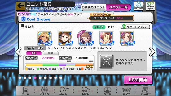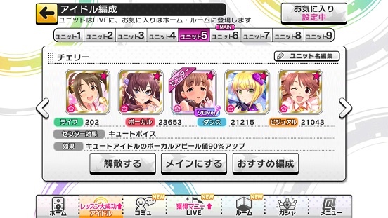 MASTERはフルコンできました。が、ビジュアル特化のSSRなんて持ってないし、キュートって最も選択肢の少ない(SR以上のアイドルが一番いない)ので79万と止まりです。無課金だとこれくらいでしょうか?しかし私も課金をそろそろする予定かも(限定復刻してくれたら)上のきのこユニットの方が取れるんかいなw NICEどころかMISSもあるのに。