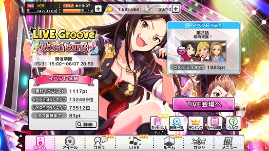 Grooveはこれくらいにするが、どっちかというとガシャの更新の方に驚いたわ!