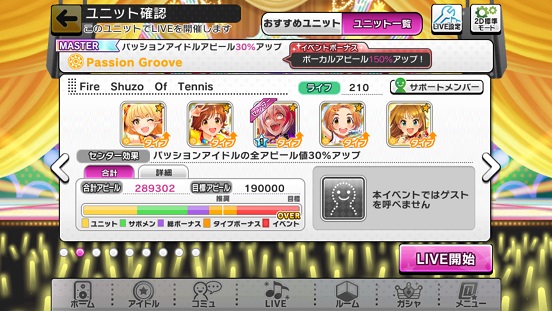 後今回はボーカルバースト。私にとっては一番有利かも。ボーカル特化持っているし(パッションはないが、SSRでごり押し)そのパッションは発揮値29万近い(ボーカル特化じゃなくても)今回こそはトロフィーを狙いたい!多分最も強いクールなら29万突破するはず。SSR蘭子いるし。SSR3人・ボーカル特化SR2人で行く。キュートもボーカル特化のちゃまが入りチャンス!これは狙うしかないでしょ~
