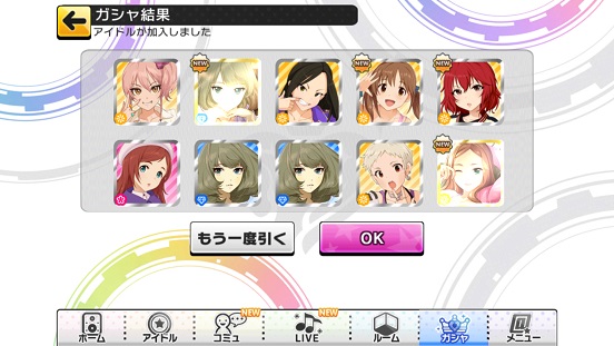 どうでもいいですが、また2500貯まったので6度目の10連ガシャです。もうこの辺になるとそうでもよくなってきたりします(笑)