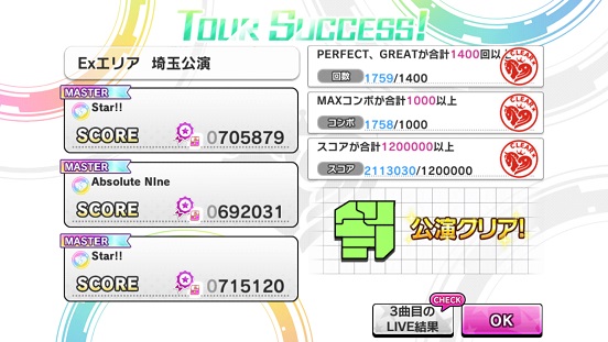 5th福島 5th京都 EX5th東京以外はクリア。