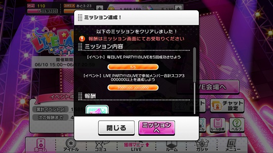 LIVEPARTYが開催中。正直数十回やってはいるもののどういう基準で順位が決まるのかが良く分からんな。多分1位になる時ってスコアも特技発動も良ければなるんだろうけど、SSRでフルコンしても4位とかあったし、逆にあまりできなかったのに2位になったことも。もうよくわからんね。