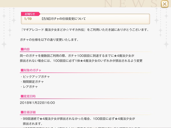 ・ガチャを引くたびに回数がカウントされる。☆4が出たらそこでリセット。100回に到達すると強制的に☆4魔法少女排出。