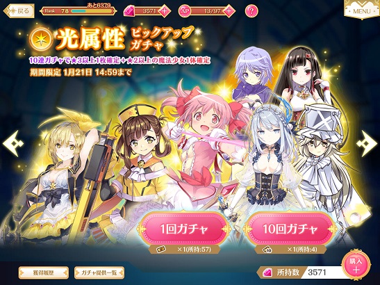 ・出てくる☆4魔法少女はランダム。(ピックアップ対象がいるならピックアップキャラは出やすい)