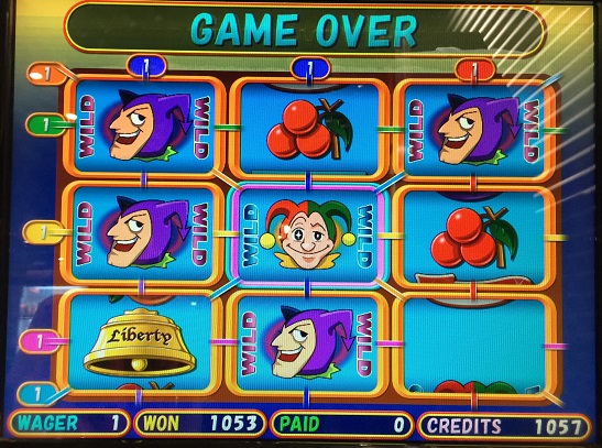昨日と同様ベルのスペシャルボーナスで850winに!しかも全く同じ形で同じ倍率でした。いやー驚きました。ボーナススピンはこれがあるからいいですね。あと隣で友人もツインジョーカーズをしていましたが、なんと4枚放出がありました。並ばないという最悪な展開でしたが倍率が3倍と一転して大逆転に。友人も1000枚超えて2人とも4ケタクレジットいきました。