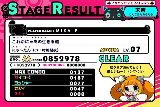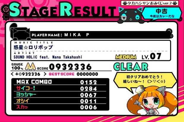 でもほかにやっているjubeatに比べると東方アレンジが圧倒的に多いというイメージ。ウサテイとかjubeatにはないしなあ。あとムービーがあるので楽しくできるのがいいところ。でもムービーに夢中になるとMISSが増える!