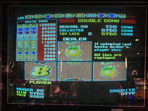 一応こんな奴が当たったのでゆっくり遊べた。ただ、1つ不満だったのは結構大きく当たったし39BETくらいにしようかと思ったらまさかのMAXBET20設定だったとのこと。しょうがないから20BETで遊びましたが。全部使い切る必要があったので使い切りましたが。それと誰かが私のプレイ見ていたけど、私が1000枚くらい当たりハーフダブルしているのを見て驚かんでも…普通大きく当たった時こそハーフでもいいから勝負するでしょ…