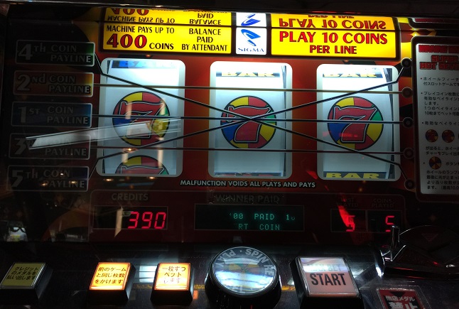 そのあとSUPER HOT SEVENSというメカスロに。ここでも777が結構来たりトリプルBARが結構並んだりして+500に。この機種で当たったのも珍しいですが。
