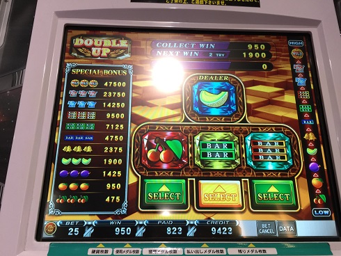 結局1050枚獲得。ダブルダウン…じゃなくてコレクト。ここからは当たり集。