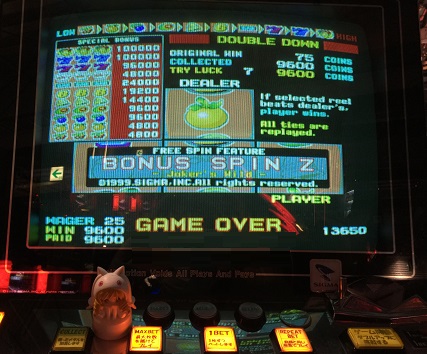 たった3ゲームなのに3625WIN!145倍のビッグヒット!途中の写真を撮ってなかった(というか撮る暇ない)けど、