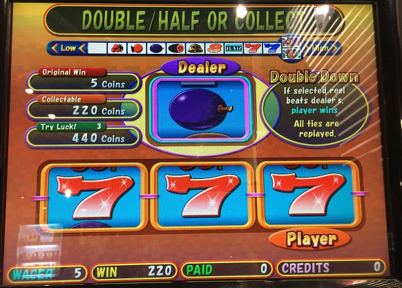 ダブルダウンでまさかの777来ました。枚数こそちょっと低いですが驚きました。