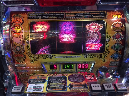 まず昨日も当たったインド風メカスロガジャスキング。なんと今日もフル稼働してくれました。開始早々フリー。ガジャスチャンスでしたが微妙な結果に。白7は揃わず。しかし2回目はすぐ来てくれました。