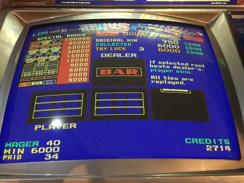 しかしダブルダウンで再びSIGMA振り切りを超えた!ハーフあるが。正直追加JOKER0とかふざけんなって感じだった。当然の如く怒りのダブルダウン。まあ5000超えたしいいでしょう。その後は遊び当たらなかったので5000枚でアテンダント。