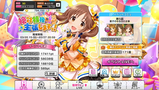 これでイベントは終わり。まあもう1枚&銅トロフィー確定だろうし、適当に結果見るか。