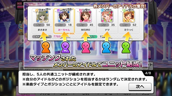 アイドルの上にパフォーマー・ボーカリスト・センター・ダンサー・リーダーの5つが存在する。パフォーマーはビジュアルがアップ。ボーカリストはボーカルが上がる。ダンサーはダンスが上がる…という風になる。センターとリーダーは何なんか?になるけどこれはリーダーは全能力が上がる、リーダーは体力が上がるということ!