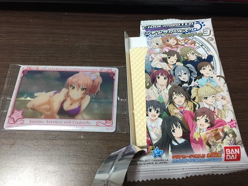 GROOVEは以上。それと今日は研修が終わり、帰宅途中にシンデレラガールズのウエハースがあったので購入。封を開けて引いたのは、
