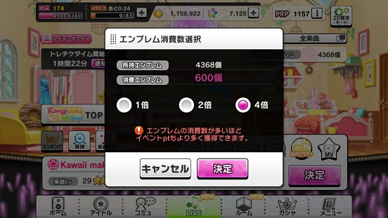 当然エンブレムもガンガン貯まるため4倍が解放されてからは全部これで消費した。