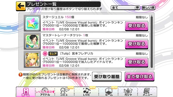 グルーブ系で気を付けたのはとにかく体力が50になったら起動してMASTERを回すこと!普通の時間ならいいが土日なんて15時30分くらい、