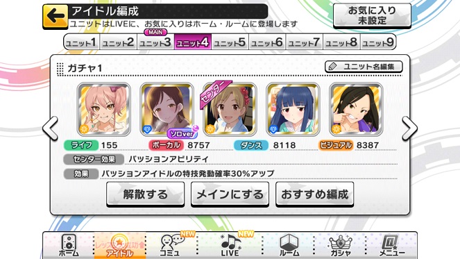 アニメ見ている感じでGOOD!キャラゲーの要素も強いです。ちなみに現在のセンターは渋谷凛(レア)です。クールアイドルメインに進めています。