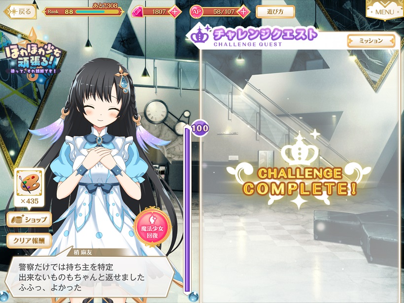 とにかく手持ちのレベル80以上の魔法少女を全員フル稼働させてクリア。普段使わない子もどんどん起用できたのはかなりいいイベントだと思った。ただ、死にまくり。