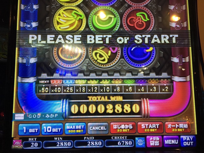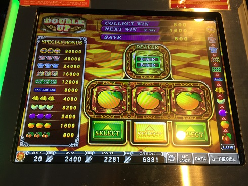 ジュークで2880。例の如く1920まで叩きそこからハーフ連打。ラッシュの時にも思ったけど7ラッシュといいチャンスゲームでまともに当たったためしがほとんどなので結局ダブルアップ頼みになっている。